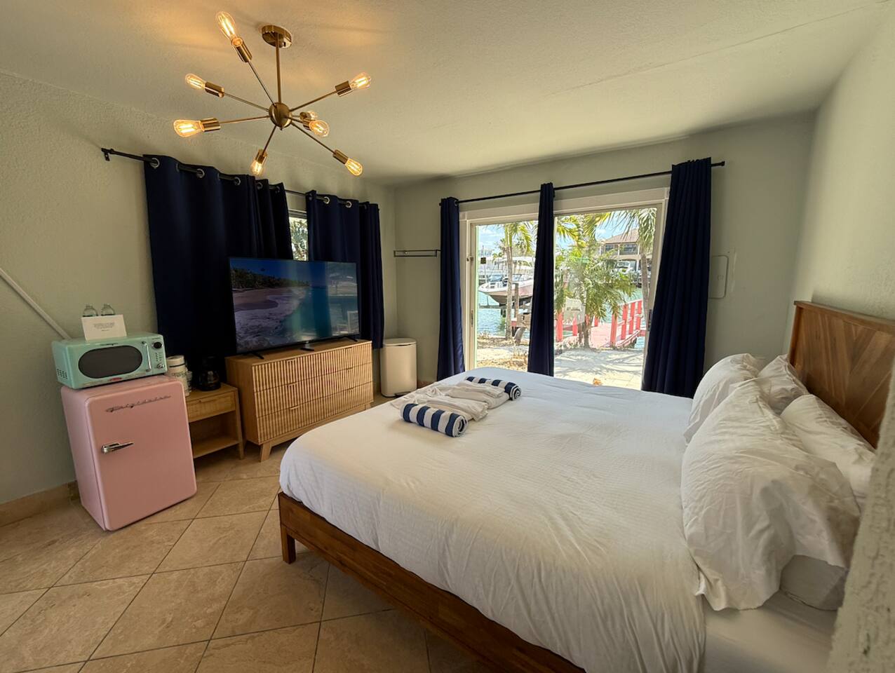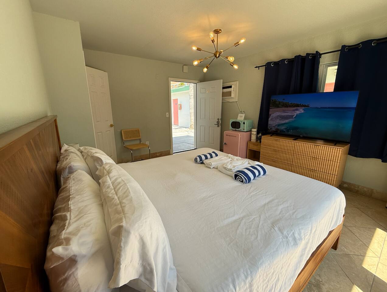 In our cozy one-bedroom, one-bathroom unit, perfectly located just 3 minutes from the warm white sands of Clearwater Beach. Whether you're here to unwind or explore, our location puts you steps away from the beach, local attractions, and the serene beauty of the coastline. Inside the unit, you'll find: 1 comfortable king Bed for a restful night's sleep A full bathroom stocked with essential toiletries Mini Fridge, Microwave, and a Coffee Maker to help you stay refreshed and fueled throughout the day. While there is no full kitchen, we've made sure the essentials are here to make your stay as convenient as possible. *please note this sliding door does not open* Be sure to book your perfect day in paradise ๐ด we can't wait to welcome you to Clearwater Beach and make your stay unforgettable!